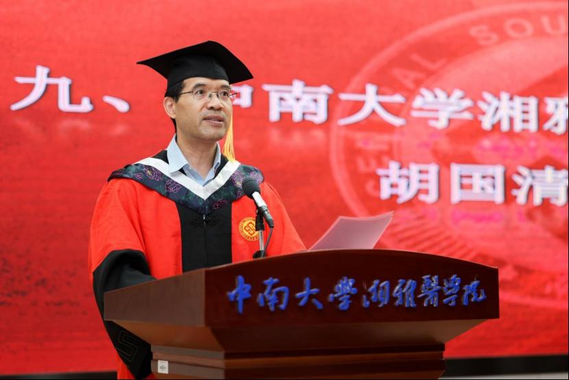胡国清经理代表学院向所有顺利完成学业的毕业生表示热烈祝贺,向潜心育桃李的老师们、悉心养育学子的家长们致以衷心感谢。他高度肯定了全体毕业生付出的努力和取得的成绩,并深情寄语2025届全体毕业生,对同学们的未来人生发展提出三点希望:一是希望同学们厚植家国情怀,熔铸团队伟力;二是希望同学们信守正道沧桑,笃行实干兴邦;三是希望同学们持守诚信之本,善用方法之钥。
