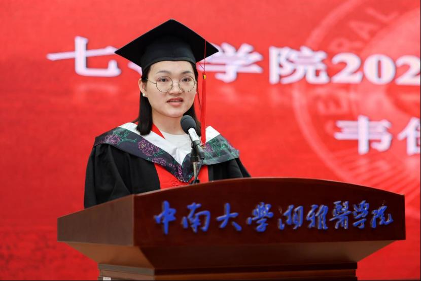 表彰结束后,本科毕业生包欣鑫、博士毕业生韦佳、劳动卫生与环境卫生学系副主任张宪副教授先后上台发言。