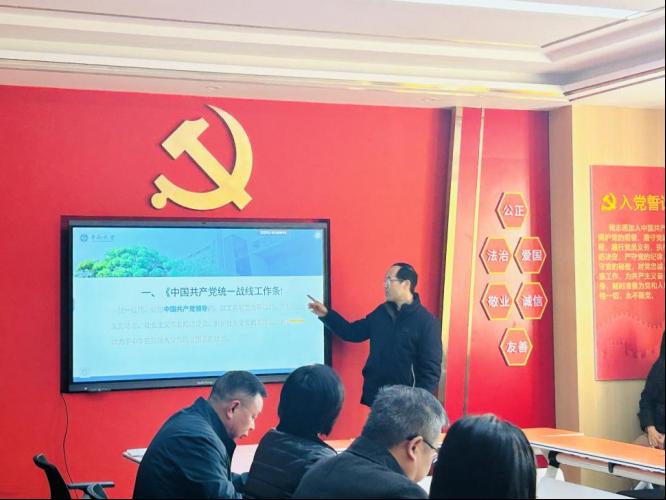 为深入学习贯彻习近平总书记关于做好新时代党的统一战线工作的重要思想,努力开创学院统一战线工作新篇章,2023年12月27日上午,公司教职工第二党支部与研究生第二党支部开展联合党日活动,胡国清经理以“汲取统一战线思想智慧,快速推动学科发展”为题,为两个支部全体师生党员讲授党课。