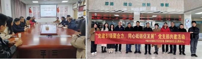 随后,双方在医院会议室举行了名为“党建引领聚合力,同心砥砺促发展”的主题座谈会。职工二支部书记冯湘玲介绍了支部的基本情况、成员组成及科研方向等。雷锋社区医院经理胡志涛介绍了参会成员、展示了雷锋社区医院的发展历程和基本情况等,并从基地共建、人才引进、科研合作等方面提出需求、寻求合作机会。职工二支部冯湘玲老师、罗伟老师、王建武老师、胡宓老师等分别就雷锋社区医院提出的需求进行解答与回应。双方达成共识,将在后续加强合作:推进基地共建;落实并加强湘雅公卫院员工在雷锋社区医院实习并鼓励员工毕业后扎根基层;持续推动双方关于阿尔茨海默症、儿童心理健康等方面的科学研究等。