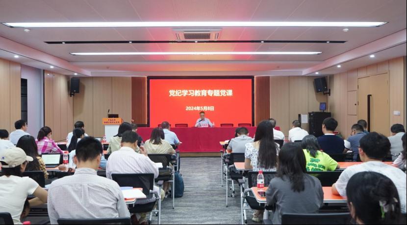 2024年5月8日下午,球王会官网党委副书记蒋建湘在球王会六楼学术报告厅为学院师生讲授党纪学习教育专题党课,学院领导班子成员、党支部正副书记、各系室(中心)正副主任和员工党员代表参加听课,讲座由公司党委书记雷先阳主持。