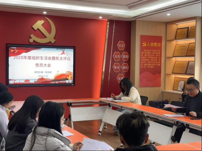 为进一步巩固党支部战斗堡垒作用,强化党员党性修养与使命担当,3月10日下午,研究生第一党支部在学院B210党员活动室召开2025年度组织生活会暨民主评议党员大会。公司党委书记雷先阳到会指导,党支部书记陈梦施主持会议,支部全体党员参加。