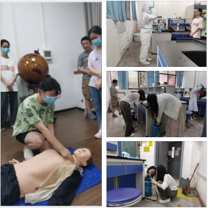 流行病与卫生统计学系邓静副教授、劳动卫生与环境卫生学系黄云副教授在承担着研究生答辩、本科生答辩、学期教学任务等高负荷工作状态下,毫无怨言地主动承担起为员工开展实操培训工作,利用自己挤出的时间完成了今年公司50余名考生的培训任务,培训内容涉及仪器检测和采样、个人防护和卫生处理、心肺复苏模拟等三个站点的20余个实践操作考试项目。