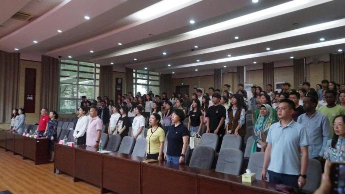 秦家碧介绍了出席开学典礼的学院领导、老师,并宣布典礼正式开始。在庄严的国歌声中,开学典礼正式拉开了帷幕。在开幕词中,他对大家成为湘雅2023级研究生新生表示衷心的祝福和欢迎,随后他强调大家在新征程要锻炼自身能力,内化于心外化于形,并始终常怀先天下之忧而忧,后天下之乐而乐的家国情怀。