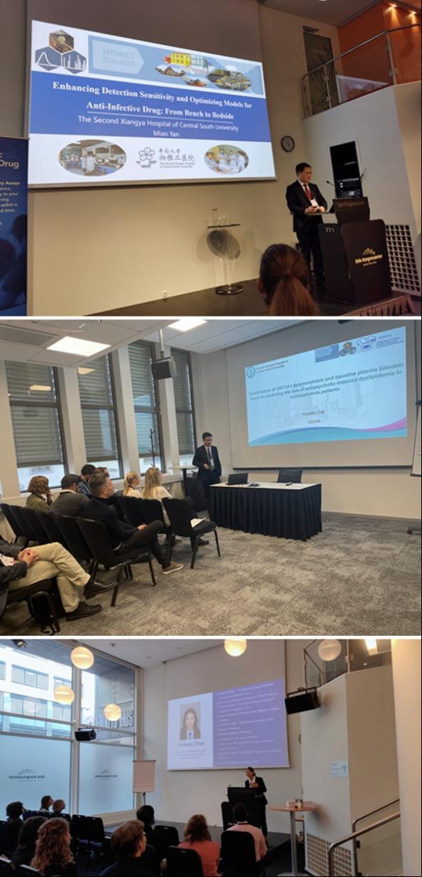 颜苗以“Enhancing Detection Sensitivity and Optimizing Models for Anti-Infective Drug: From Bench to Bedside”为题进行特邀报告。此外,他还做了题为“Analysis of Different Voriconazole Administration Schemes and Predictors of Its Trough Concentration and Treatment Efficacy in Patients with Liver Dysfunction”的报告。这一报告深入对比了不同伏立康唑给药方案的浓度差异,并探索了影响肝功能不全患者药物谷浓度和治疗效果的预测因子。蔡骅琳则以“UGT1A1 polymorphism and baseline bilirubin levels in predicting the risk of lipid disturbances in schizophrenia patients after antipsychotic treatment”为题进行口头报告,探索了UGT1A1基因多态性与精神分裂症患者抗精神病药物治疗后脂质代谢紊乱风险的影响;赵翊畅以“How to Predict Tacrolimus Dose and Concentration During Voriconazole Co-Therapy in Renal Transplantation Recipients?”为题进行口头报告,为伏立康唑联合他克莫司治疗的肾移植患者如何精准预测他克莫司剂量和浓度提出了重要的临床证据。这一系列报告不仅展示了湘雅二医院药学部在精准用药方面的深厚研究实力,同时突显了药学部致力于提升药物临床疗效、减少不良反应发生的科研精神和临床药学专业价值。