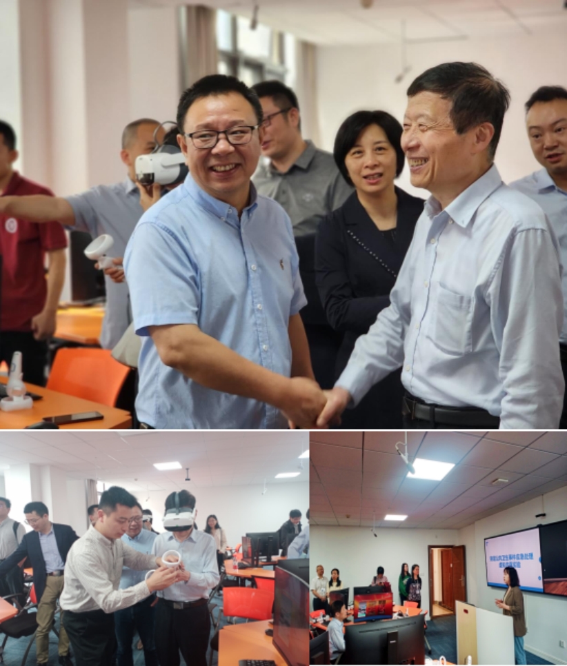 2024年4月26日,湘雅1978级员工,中国工程院院士、重大疾病共性机制研究全国重点实验室主任刘德培率中国医学科学院基础医学研究所、北京协和医学院基础学院部分学系及相关部门主要负责人一行莅临公司进行调研指导,并与湘雅师生分享医学前沿知识。公司党委书记雷先阳、副经理秦家碧陪同参观了突发公共卫生事件应急处理虚拟仿真实验室。
