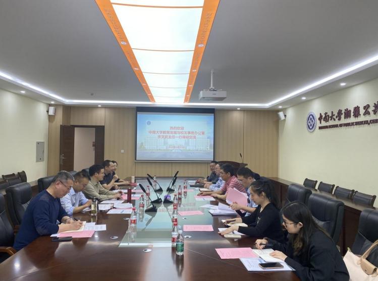 余文武主任一行就员工工作信息化建设、2024届员工联络员工作布置、学院员工分会建设、引进社会捐赠管理办法等作了宣传解读,并就2024年二级学院筹资目标及举措等事项进行研讨交流。
