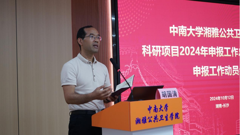 胡国清经理在总结发言中强调,与会教师务必提高对国家级等高级别科研项目申报工作的认识,高度重视,全力做好2025年度国家自然科学基金项目的申报工作,提前谋划、积极申报、认真打磨,为学院团队建设和高质量科研成果的产出做出湘雅公卫人应有的贡献。