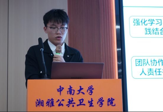 在汇报分享环节,2022级公共卫生硕士专业学位研究生依次汇报,介绍了自己过去一年在实习单位的主要工作,分享了自己的心得体会以及对学院未来进行的专业实践提出了宝贵的建议或意见。余意同学在湖南省妇幼保健院医学遗传科进行专业实践时,学习到了有关胎儿常见出生缺陷疾病、产前筛查与产前诊断技术的相关医学知识,自主协助导师和校外导师的多个国家级、省级科研项目的申报,提升了专业能力,推进了课题研究进展,收获颇多。张杨同学前往球王会官网湘雅医院皮肤科实习,积极参与了疫情政策与急诊就诊人次的时间序列分析、老员工与老年人的皮肤病流行病学调查项目,意识到了自身需要加强专业学习与实践的结合,团队协作应当与个人责任并重,需增强工作主动性。谢怡媚同学在邵阳市妇幼保健院自主实现了科室的轮转实习,积极推进保健院孕妇学校的建设。她表示专业实践不仅丰富其医学知识,而且还增强了其对妇幼保健事业的热爱和对工作的责任感。唐嘉鹏同学先后前往国家卫生健康委卫生发展研究中心、湖南省疾病预防控制中心进行专业实践,参与了高值医用耗材治理改革政策研究、北京市适宜人工智能医疗技术遴选研究、2024年员工营养健康状况连续性监测现场调查、MPH教材《公共卫生专业的岗位胜任力培养》学校卫生章节部分内容的编撰等多项科研活动,得到多位带教老师的高度认可,专业知识、科研能力、协调组织能力多方面得到提高。 48名同学在汇报中相继提出了在未来的专业实践中增加实践基地的多样性、不断完善专业实践过程评价体系、增加科室轮转机会、统一安排实习内容、结合岗位招聘需求完善优化专业实践内容等良好的建议或意见。大家共同期待能够在公共卫生领域开拓出湘雅公卫人的新天地!
