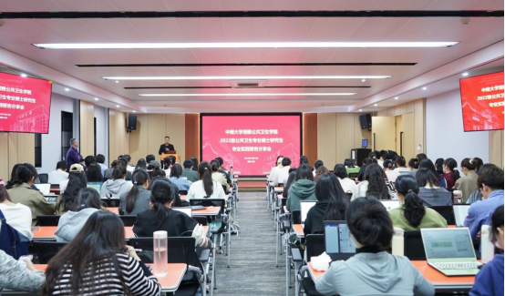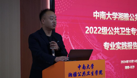 秦家碧副经理在会上强调了公共卫生硕士专业学位研究生专业实践的重要性。他指出,国家战略层面上需要培养高层次应用型高水平公共卫生人才,以应对突发公共卫生实际问题,新冠疫情的暴发更加凸显了公共卫生医师的重要性。目前学院正在探索与湖南省疾病预防控制中心开展公共卫生医师规范化培训项目,根据公共卫生硕士培养目标,科学地融入专业实践内容,系统性地重点培养理论与实践相结合的复合型公共卫生人才。他鼓励同学们深入实践,不断探索,充分掌握公共卫生领域的核心技能,形成自己在该领域的独有的优势特色,为未来的职业生涯做好铺垫。