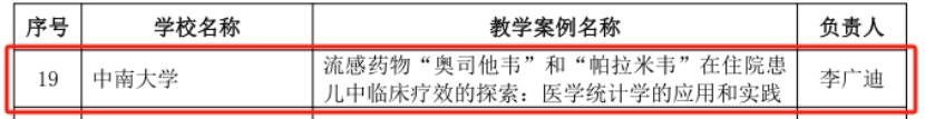 李广迪教授的优秀案例《流感药物“奥司他韦”和“帕拉米韦”在住院患儿中临床疗效的探索:医学统计学的应用和实践》适用于研究生《医学统计学》、职工《Medical Statistics》、博士生《高级生物统计》课程。本案例通过医学统计学的常用方法,探索常用流感药物奥司他韦和帕拉米韦在住院患儿中的临床疗效,将启发研究生利用《医学统计学》常用统计方法,解决临床中的未解难题。相关成果已纳入2023-2024 美国流感指南。