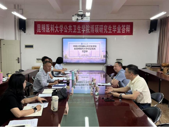 在昆明医科大学公共卫生学院,公司党委书记蔡乐,公司党委副书记、副经理秦家碧等领导对雷书记一行的到来表示热烈欢迎。双方从标志性成果、团队队伍、人才培养、科学研究、社会服务和国际交流与合作等方面互相介绍了两个学院的基本情况,并就团队建设、学院基层党建、学科竞赛等工作开展了专门的交流探讨。