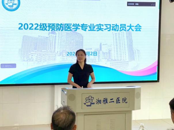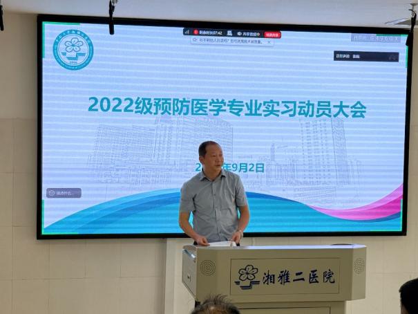 会上,湘雅二医院教务部副主任曾选飞详细解读了预防医学本科生临床实习的大纲要求,着重强调了完全病历的书写规范,并希望同学们严格遵守实习纪律、尽快适应角色转变,以积极主动的态度投入实习。