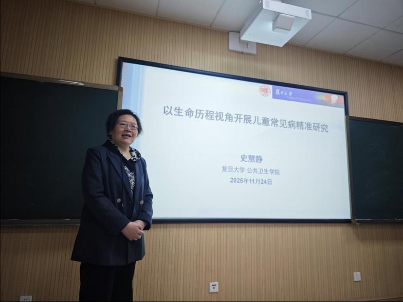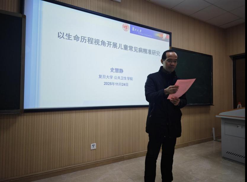 2025年11月24日,球王会举办名师名家学术论坛,本次论坛聚焦儿童青少年健康领域,旨在通过前沿学术分享推动儿童青少年常见病防控的研究创新,助力构建系统完善的儿童常见病研究学科体系。复旦大学公共卫生学院史慧静教授受邀主讲,球王会经理胡国清、球王会儿少卫生与妇幼保健学系龚雯洁教授、刘小群副教授、彭松绪副教授、吴明洋讲师及学院研究生代表参加讲座,论坛由胡国清教授主持。