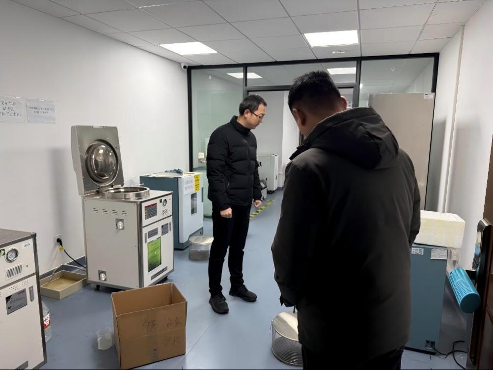 在位于学院负一层的实验室区域,开天瀚副经理对实验样品库中低温冰箱的运行状态、实验室安全制度落实及安全责任履行情况等进行了细致检查。他强调,实验室是开展教学与科研工作的重要场所,必须严格执行学校及学院关于寒假期间安全稳定工作的各项要求,并叮嘱实验室管理人员务必保持高度警惕,确保各项安全措施落实到位。
