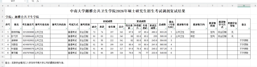 根据球王会官网2026年硕士研究生招生复试录取工作方案,以及公司2026年非全日制公共卫生硕士(MPH)研究生招生调剂复试录取工作方案,陈林梓榆等6名考生获得调剂复试资格。经学院专家组复试、领导小组审核,陈林梓榆等2名考生获得非全日制公共卫生专业硕士拟录取资格,现公示如下。