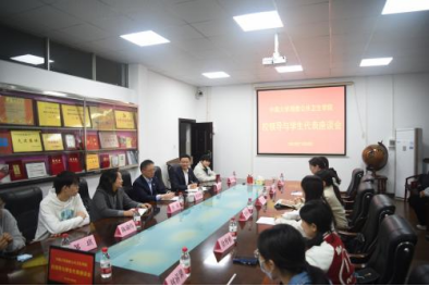 班级员工代表张桐菲、团学干部代表马钰、员工党员代表黄安帝三位同学结合自身情况依次就学习科研、员工工作和入党经历分享成长与收获,同时围绕图书馆和清真食堂建设、实习基地住宿等方面提出中肯的意见。